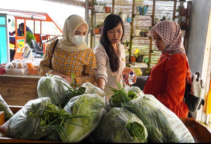 Berbagai hasil pertanian dan perkebunan yang dipasarkan para pedagang pasar ini, dibeli Ketua Persit Kartika Chandra Kirana Koorcab Rem 071 beserta Wakil Ketua dan pengurus berupa sayur-sayuran dan buah’buahan.
