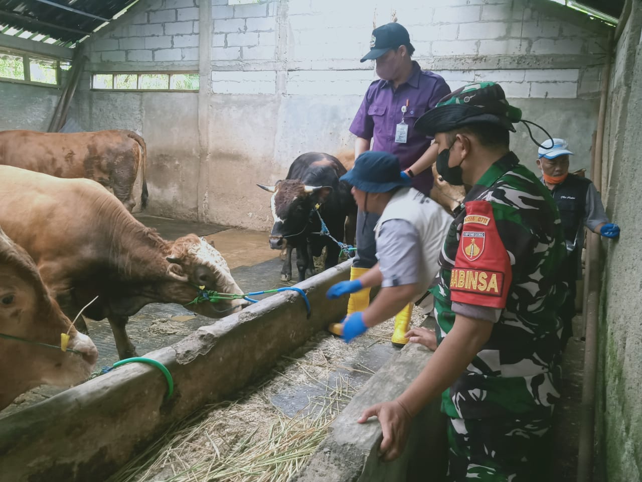 Guna memantau dan mengantisipasi penularan penyakit mulut dan kaki (PMK), Serda M. Taofik menyampaikan agar apabila ditemukan ternak yang terjangkit PMK dengan ciri-ciri lepuh atau lesi pada gusi, lidah, dan pada puting susu hewan ternak, demam tinggi antara 40-41°C, luka pada celah kuku dan kuku mengelupas, keluar lendir dari mulut serta tidak mau makan agar tidak ragu untuk segera melapor kepada petugas kesehatan hewan setempat, atau bisa juga melalui call center posko PMK dengan nomor 085946067246 pungkasnya.