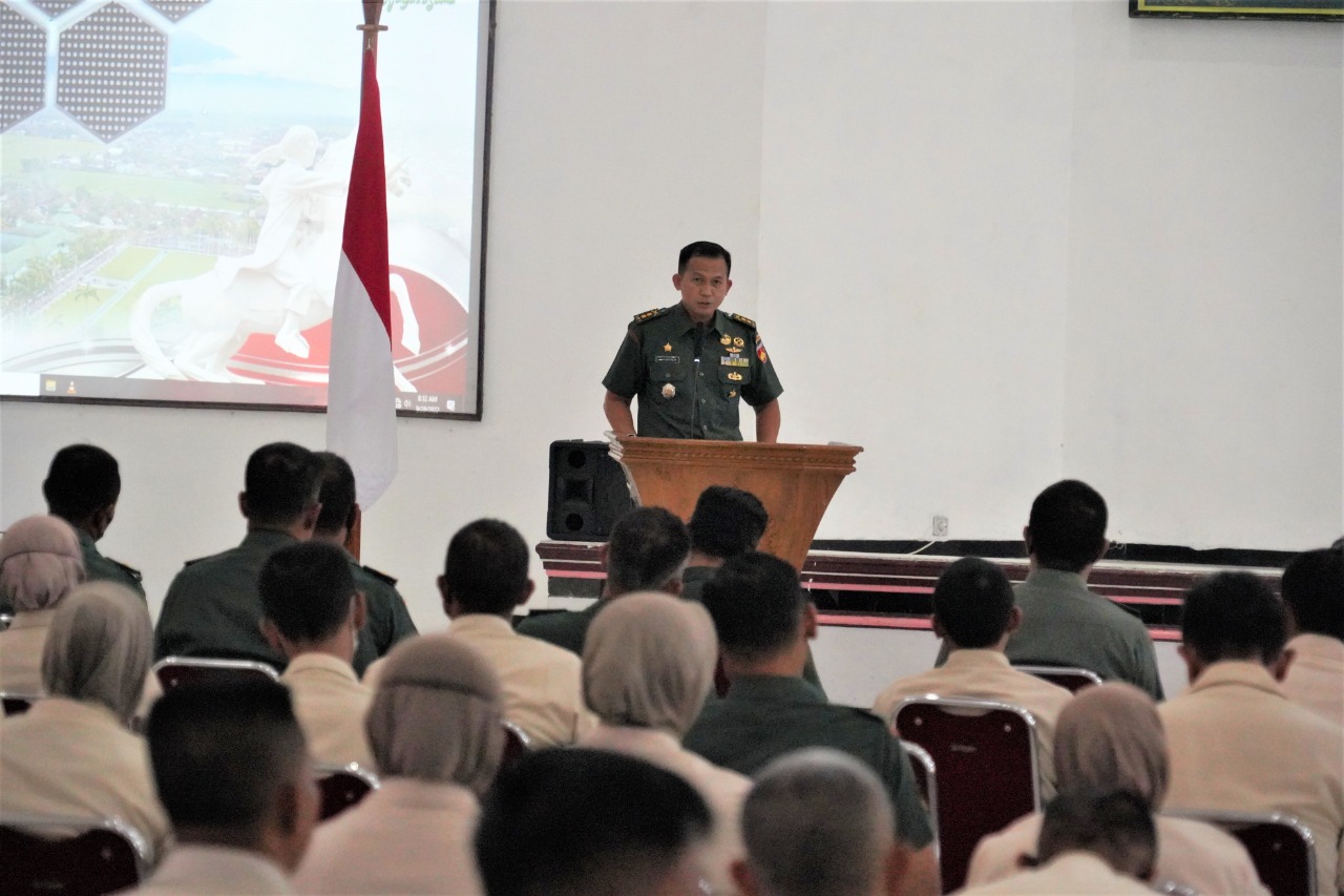 Banyumas – Prajurit dan PNS Makorem 071/Wijayakusuma dan Balak Aju Kodam IV/Diponegoro jajaran Korem 071/Wijayakusuma menerima sosialisasi Perjanjian Kerja Sama antara TNI AD dengan Bank BRI, di Gedung Pertemuan A Yani Makorem 071/Wijayakusuma Sokaraja, Banyumas.