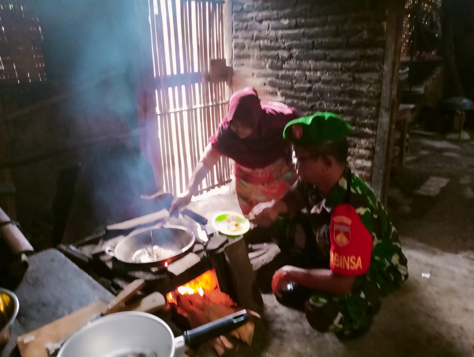 Aksi anggota TNI ini adalah bagian Babinsa Masuk Dapur, program yang bertujuan untuk mengecek dan mendata langsung kondisi dapur masyarakat kurang mampu serta memasak makanan untuk mereka.