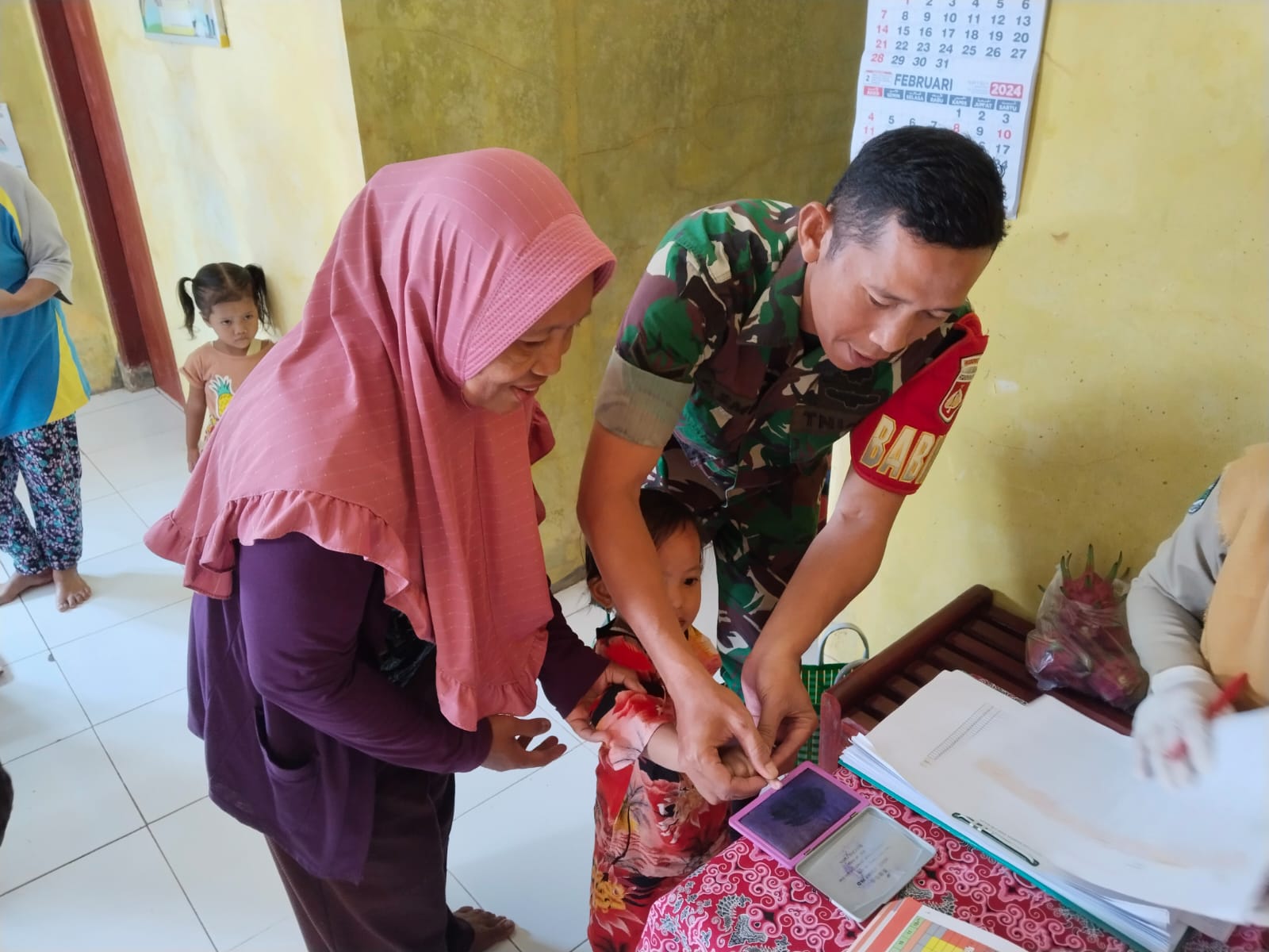 Pemalang – Babinsa desa Kreyo, Koramil 08 / Randudongkal, Kodim 0711/Pemalang, Korem 071/Wijayakusuma melaksanakan pendampingan Posyandu Teratai di desa binaannya.