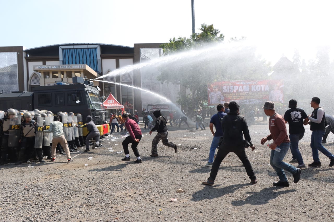 Kondisi tersebut merupakan gambaran yang sisimulasikan dalam latihan Sistem Pengamanan Kota (Sispamkota) dalam rangka kesiapan pengamanan Pilkada 2024, yang dilaksanakan di halaman Islamic Center Brebes, Selasa (20/8/2024).