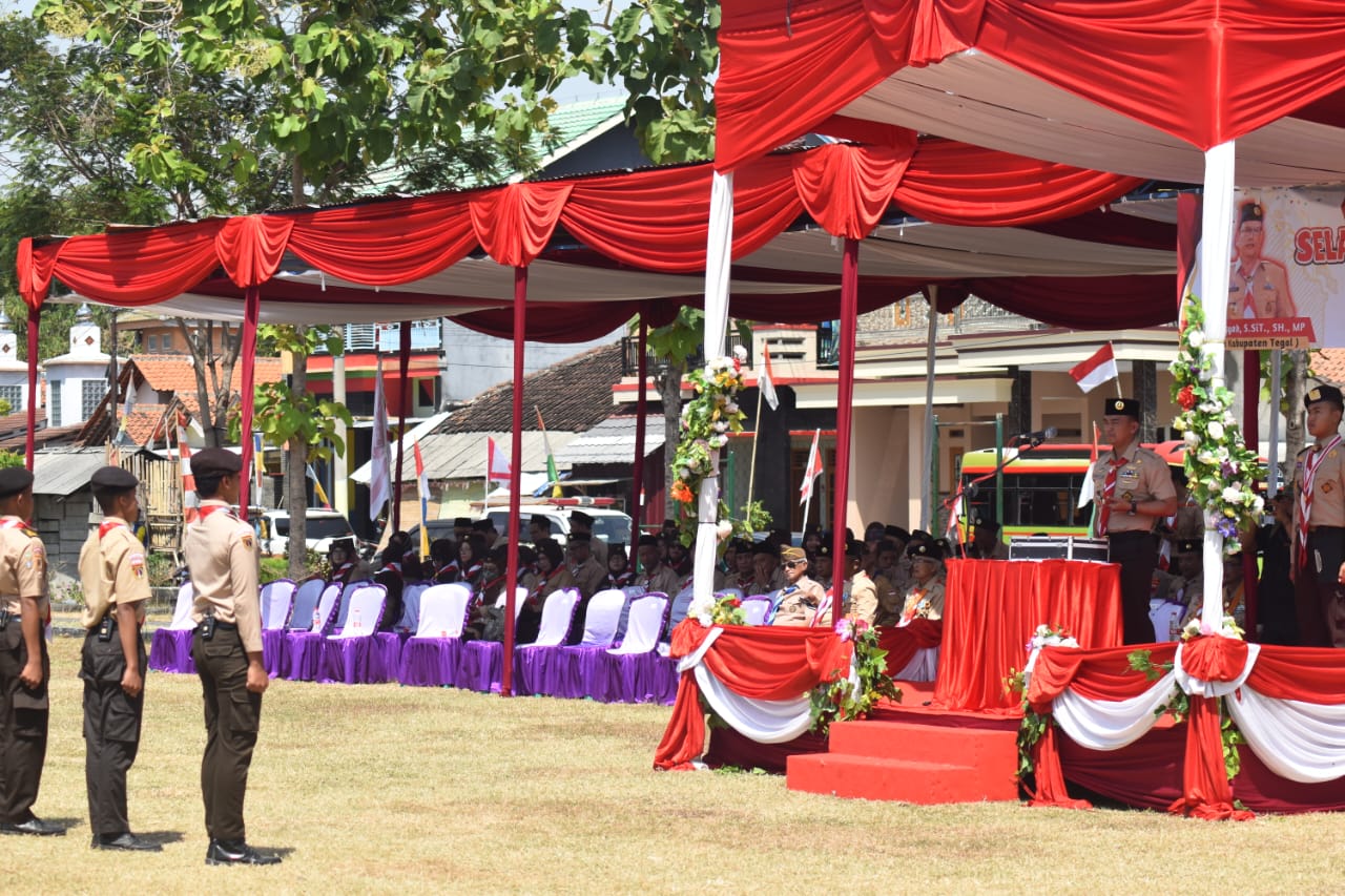 Dalam sambutannya Komandan Kodim 0712/ Tegal Letkol Inf Suratman selaku Pembina Upacara mengatakan bahwa Pada kesempatan yang berbahagia ini, marilah kita panjatkan puji syukur kehadirat Allah SWT atas segala rahmat dan karunia-Nya, sehingga kita dapat bersama-sama memperingati Hari Pramuka ke-63 tahun 2024 dengan tema “Pramuka Berjiwa Pancasila Menjaga NKRI”.