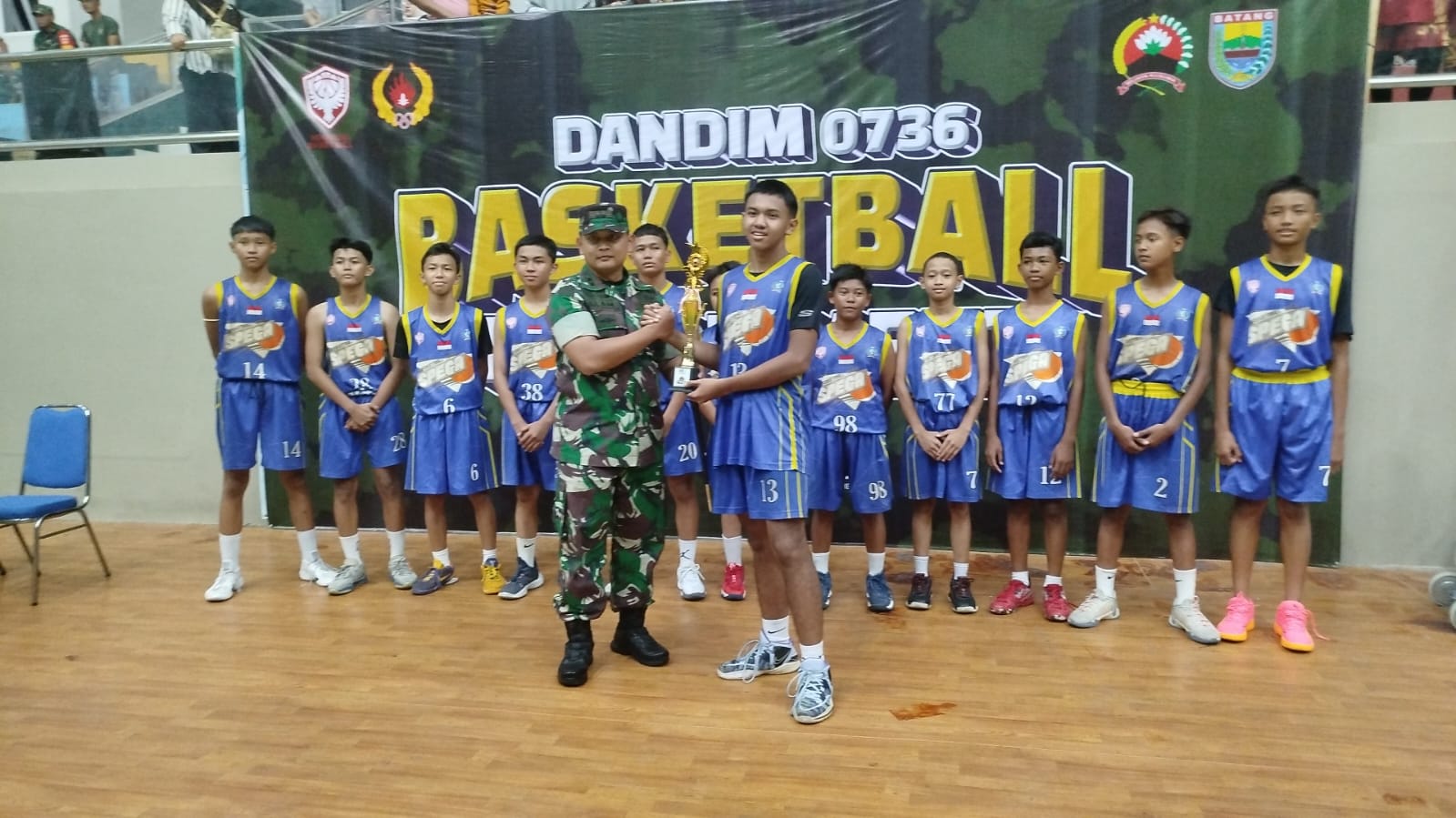 Batang,- Komandan Kodim (Dandim) 0736/Batang Letkol Inf. Ahmad Alam Budiman menyerahkan tropi, piagam penghargaan serta uang pembinaan kepada para pemenang Turnamen Bola Basket Dandim Cup Tahun 2024, bertempat di Gedung olah raga (GOR) Abirawa, Kecamatan Batang, Minggu (25/08/2024) malam.