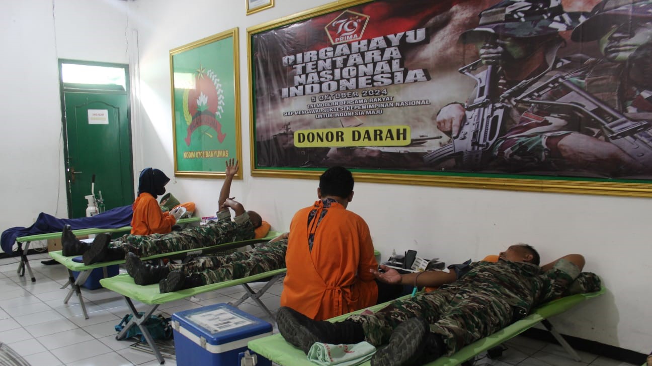 Dandim 0701/Banyumas Letkol Arm Ida Bagus Adi Purnama, S.T., M.Han., menyampaikan bahwa dalam rangka menyambut HUT ke-79 TNI, Kodim 0701/Banyumas menggelar berbagai rangkaian kegiatan sosial diantaranya Donor Darah, Pengobatan Gratis dan Sunatan Masal.