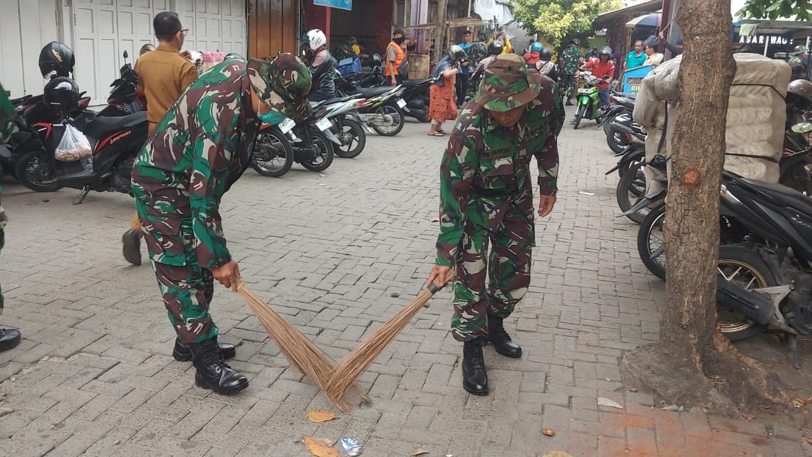 Banyumas – Dalam rangka memperingati Hari Ulang Tahun (HUT) Ke-79 Tentara Nasional Indonesia (TNI), Kodim 0701/Banyumas Korem 071/Wijayakusuma mengadakan kegiatan karya bakti sosial berupa Pembersihan Pasar Wage Purwokerto dan Kelenteng Hok Tek Bio Purwokerto, Kabupaten Banyumas. Senin (23/09/2024).