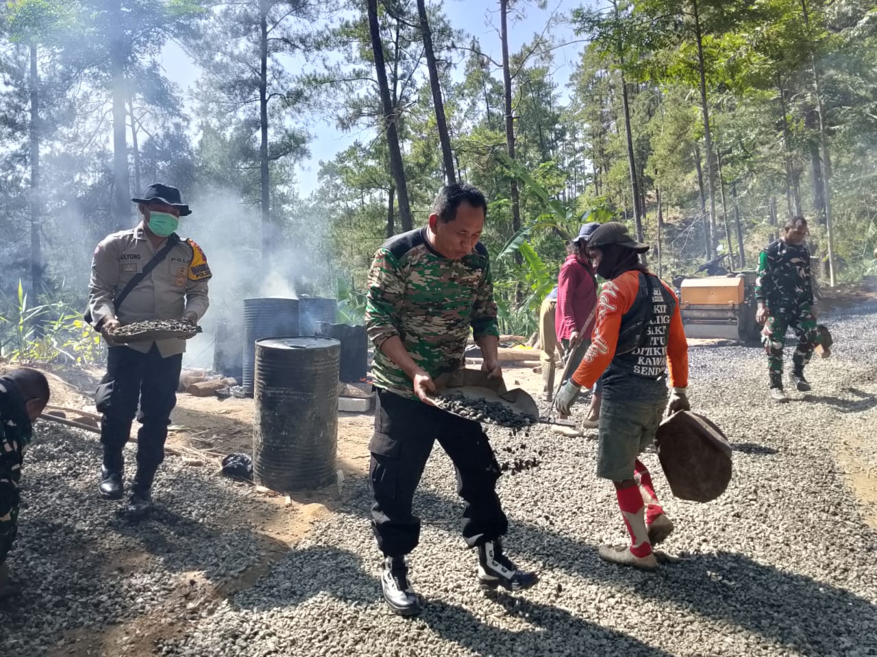 Dalam kegiatan tersebut keharmonisan dan sinergitas TNI, Polri, dan masyarakat tampak begitu dekat, terlihat pengerjaan yang dimulai sejak pagi, berjibaku membakar aspal, menyebar dan meratakan batu kerikil.