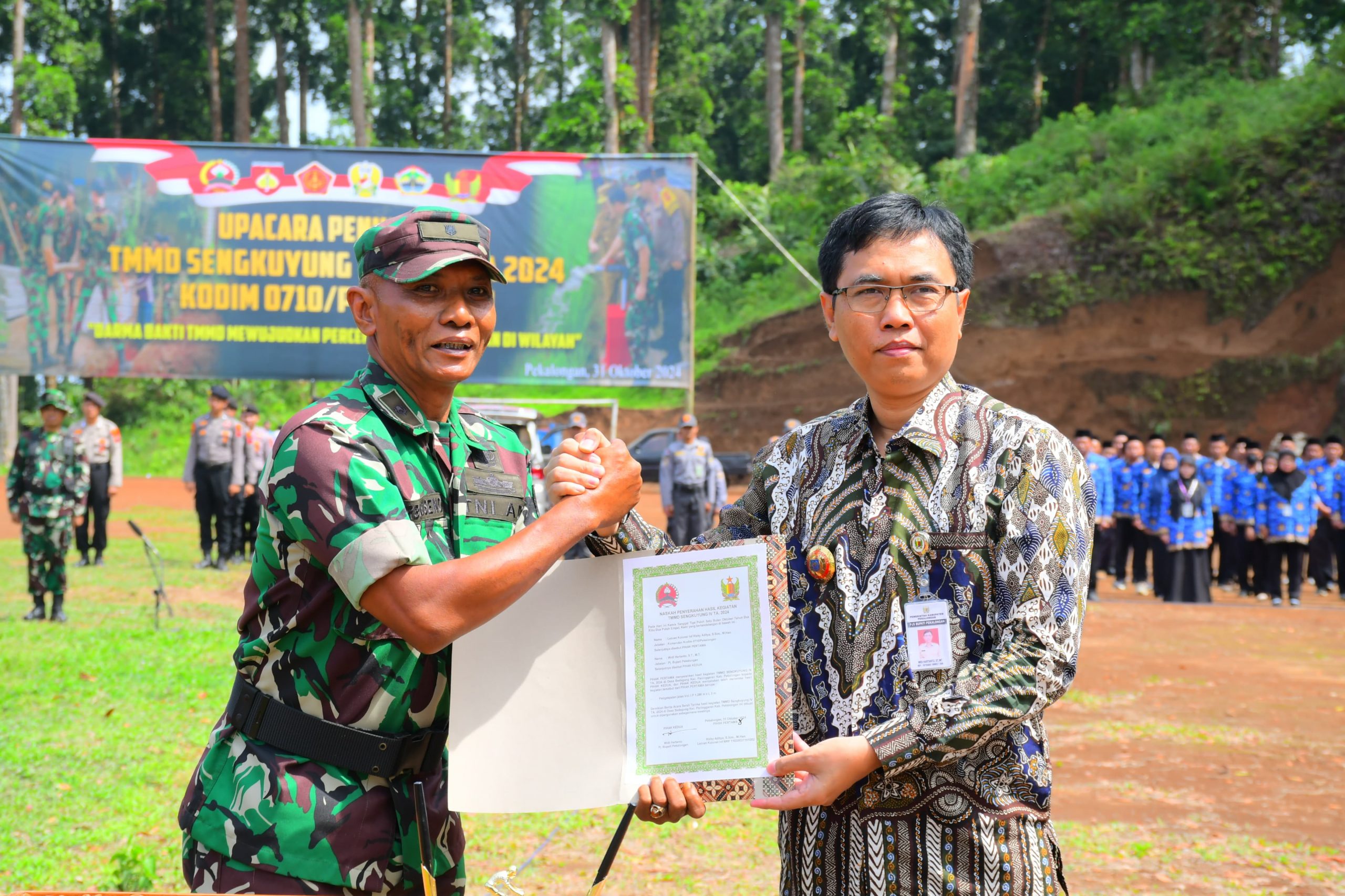Pekalongan – Mewakili Dandim 0710/Pekalongan, Periwira penghubung Kodim 0710/Pekalongan Mayor Kav Purbo Suseno menutup gelaran TNI Manunggal Membangun Desa Sengkuyung IV Ta. 2024 bertempat di lapangan Desa Pedagung Kecamatan Paninggaran Kabupaten Pekalongan. Kamis (31/10/24)