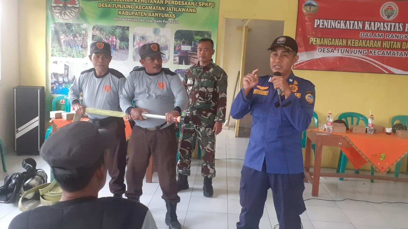 Banyumas – Peltu Sumarno Anggota Koramil 21/Jatilawang Kodim 0701/Banyumas Korem 071/Wijayakusuma melaksanakan pendampingan Pelatihan dan Peningkatan Kapasitas Satlinmas Dalam Rangka Penanganan Kebakaran Hutan dan Lahan (KARHUTLA) bertempat di Balai Kadus 3 Desa Tunjung Kecamatan Jatilawang Kabupaten Banyumas, (04/11/2024).