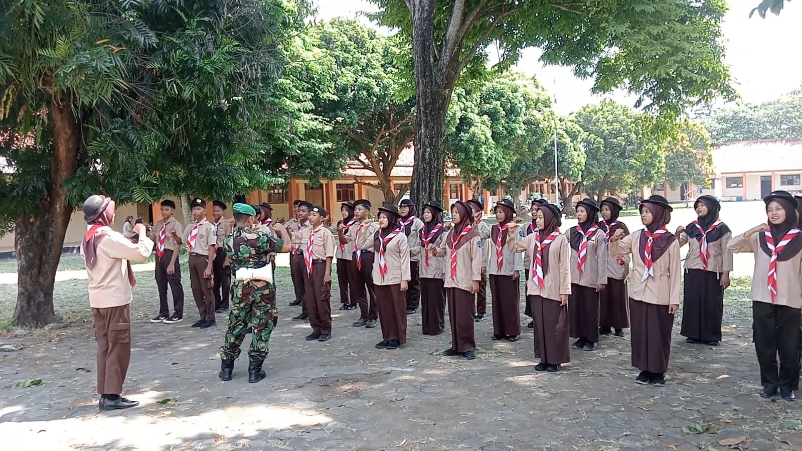 Dalam sesi pelatihan yang berlangsung pada hari ini, Serma Ali Muchid memberikan berbagai materi, mulai dari dasar-dasar kepramukaan, baris-berbaris, hingga simulasi praktis terkait kebersamaan dan kerja tim. Dengan pendekatan yang interaktif, siswa-siswi terlihat antusias mengikuti setiap arahan yang diberikan.