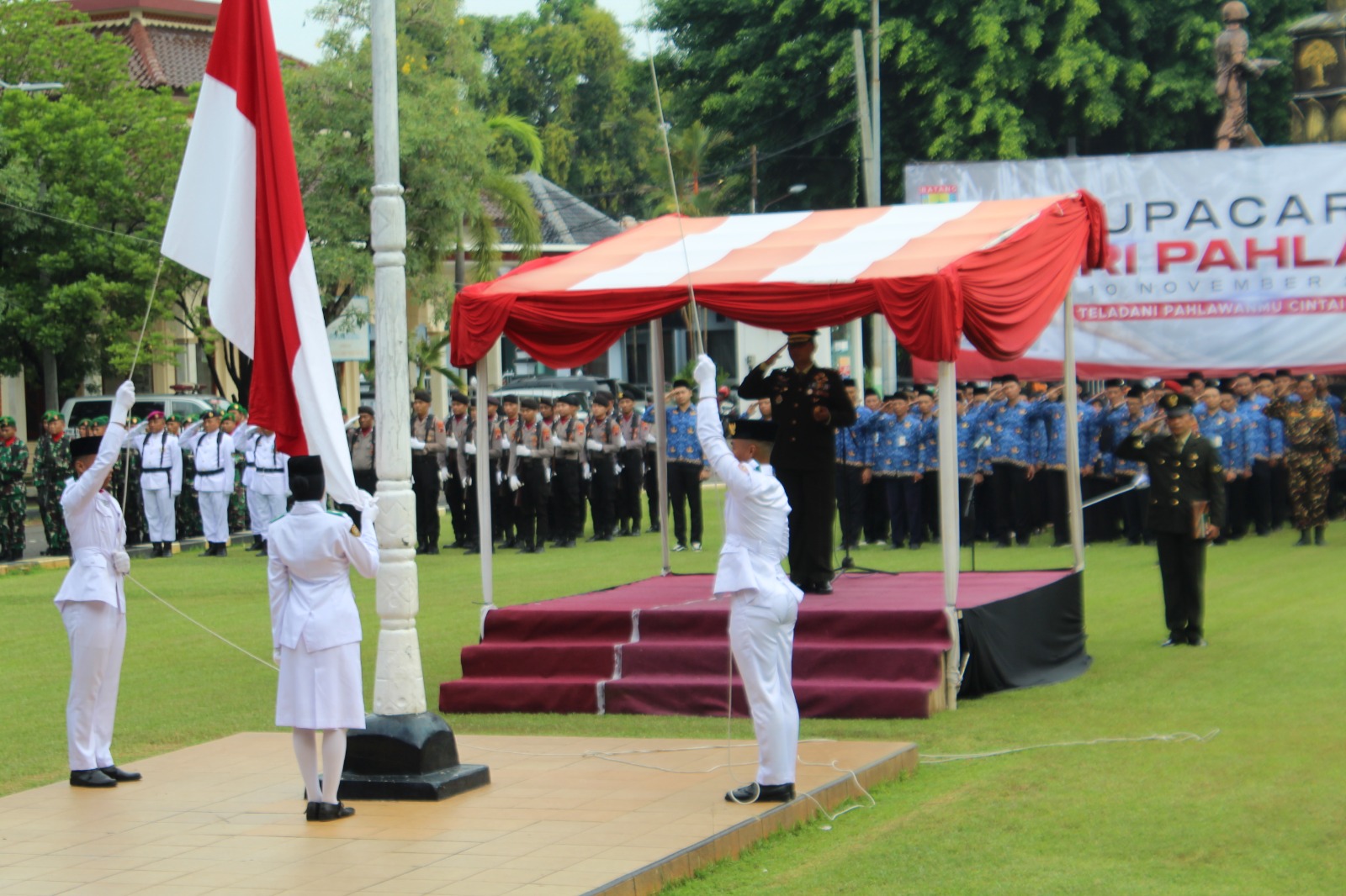 Kegiatan Upacara Hari Pahlawan Nasional diikuti oleh Forkopimda, Aparatur Sipil Negara (ASN), Pelajar, Pemuda Pancasila, Banser, Kokam dan TNI/Polri.