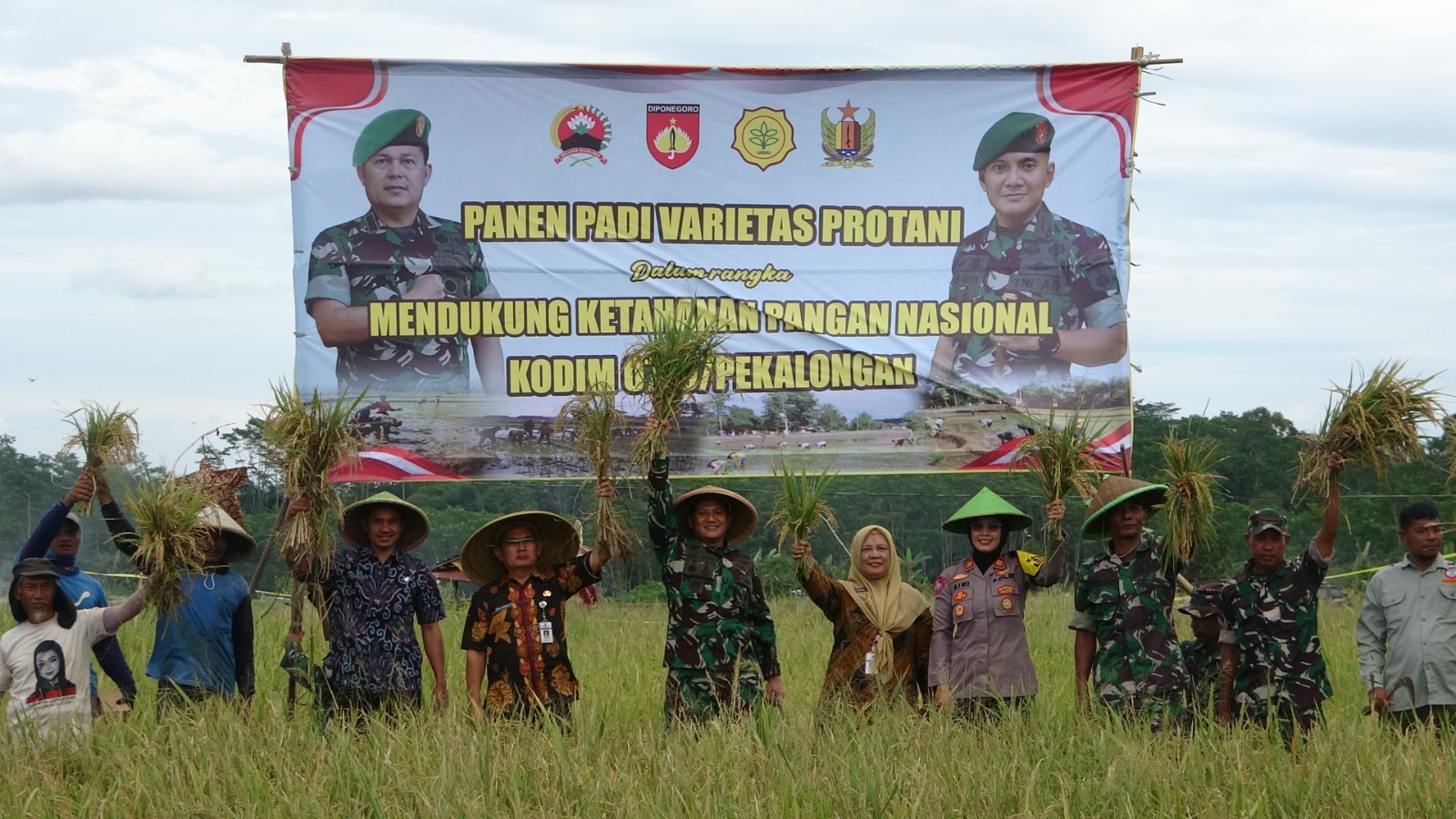 Dalam kesempatan tersebut, Dandim 0710/Pekalongan Letkol Inf Rizky Aditya menyampaikan bahwa panen padi Protani kali ini adalah sudah yang kedua dimana sebelumnya dilakukan panen di Desa Wonorejo Kecamatan Wonopringgo.
