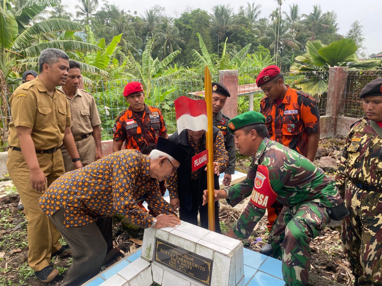 Pemalang – Dalam rangka Memperingatan Hari Pahlawan di TPU Desa Belik dan Desa Bulakan, dilakukan pemancangan bambu runcing berbendera Merah Putih sebagai bentuk penghormatan kepada dua Exponen Pejuang Angkatan 45, Bapak Warkoen Joyo Soewito dan Bapak Duryat Darmo Suwito. Hadir dalam acara ini berbagai tokoh dan instansi, termasuk Forkopimcam Belik, Sertu Sugeng Pratikno Babinsa Desa Bulakan, anggota Banser Belik, serta keluarga dan pengurus DHR BPK 45 Kecamatan Belik. Senin(11/11/2024)