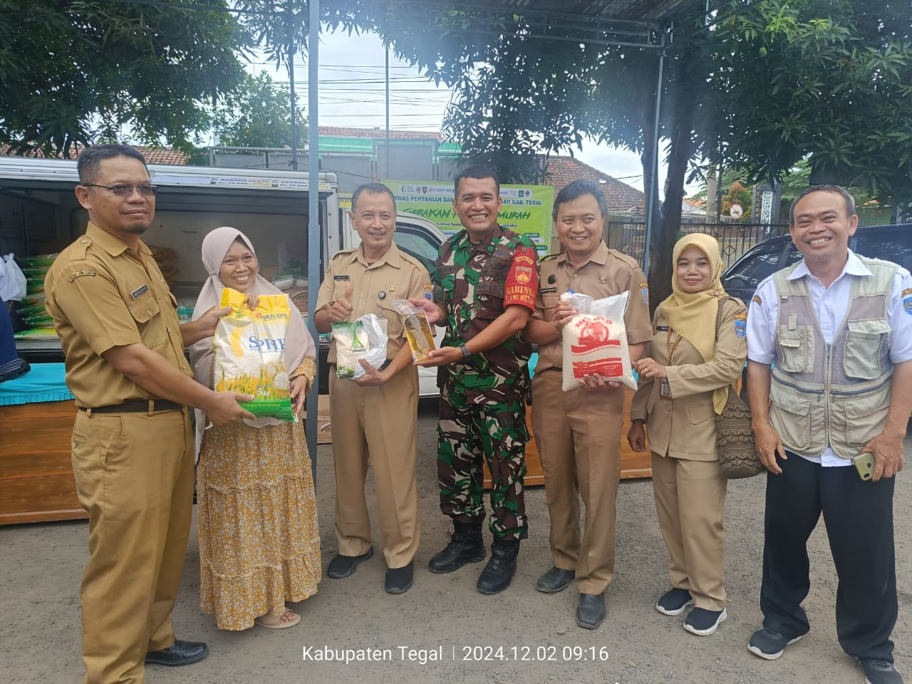 Tegal – Babinsa Koramil 14/Slawi, Kodim 0712/Tegal Sertu Margono lakukan pendampingan Gerakan pangan murah yang diselenggarakan oleh Dinas Pertanian dan Ketahanan Pangan Kabupaten Tegal dalam rangka stabiliasi pasokan dan harga pangan serta pengendalian inflasi, bertempat di Halaman Pendopo Kelurahan Slawi Wetan Kecamatan Slawi Kab. Tegal. Senin (2/12/2024)