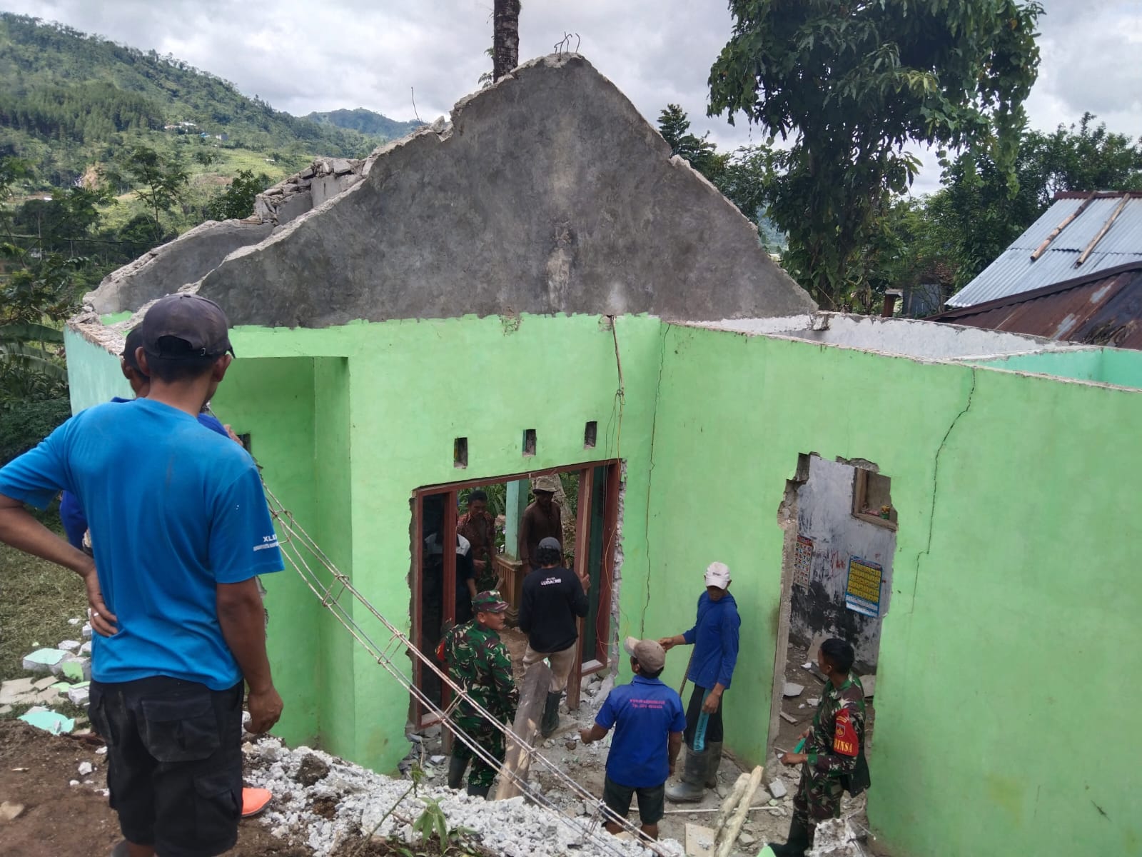 “Kami bersama tim dan masyarakat berupaya secepat mungkin membersihkan material longsor agar warga dapat kembali menempati rumahnya seperti biasa,” ujar Serka Pariyono.