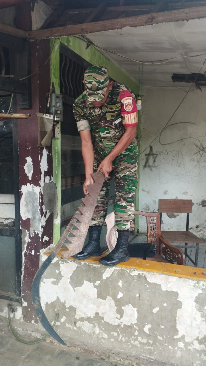 “Ditemukan 3 senjata tajam yang berbentuk mencurigakan, berupa celurit/sabit dengan gagang panjang ,parang panjang dan gergaji yang telah dimodifikasi seperti parang di plafon sebuah rumah kosong tersebut. Barang bukti kami sita dan diamankan untuk dilakukan pendalaman lebih lanjut,” tuturnya.