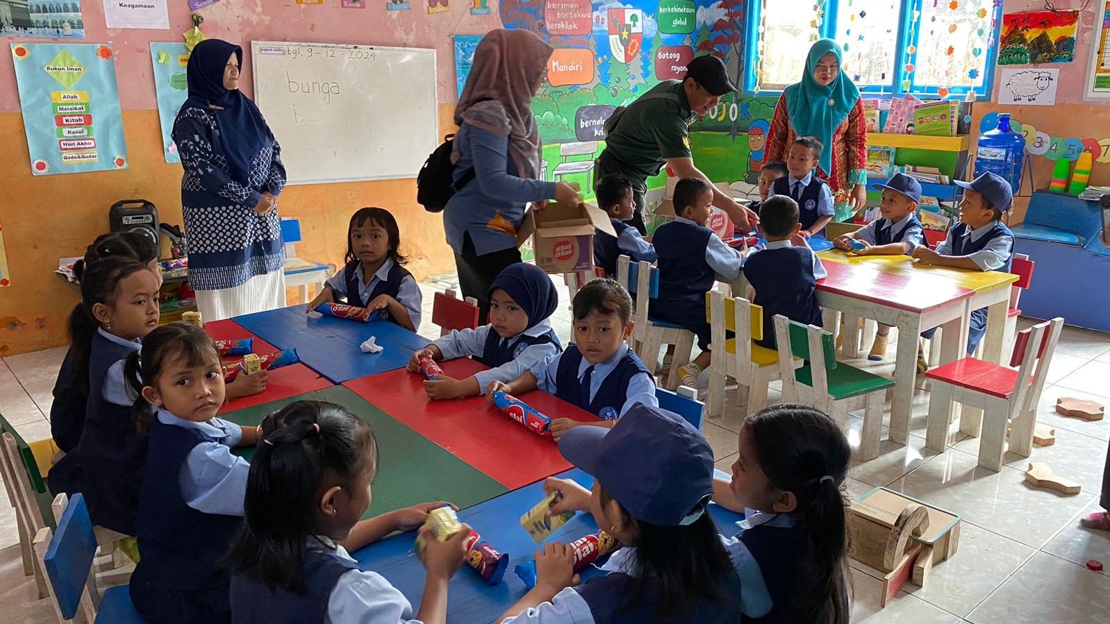 Serka Alik Sugi Waluyo mengatakan, kegiatan ini dilakukan sebagai realisasi program penurunan angka stunting bagi anak-anak serta bertujuan untuk memperbaiki asupan gizi, ketahanan fisik, dan semangat belajar anak.
