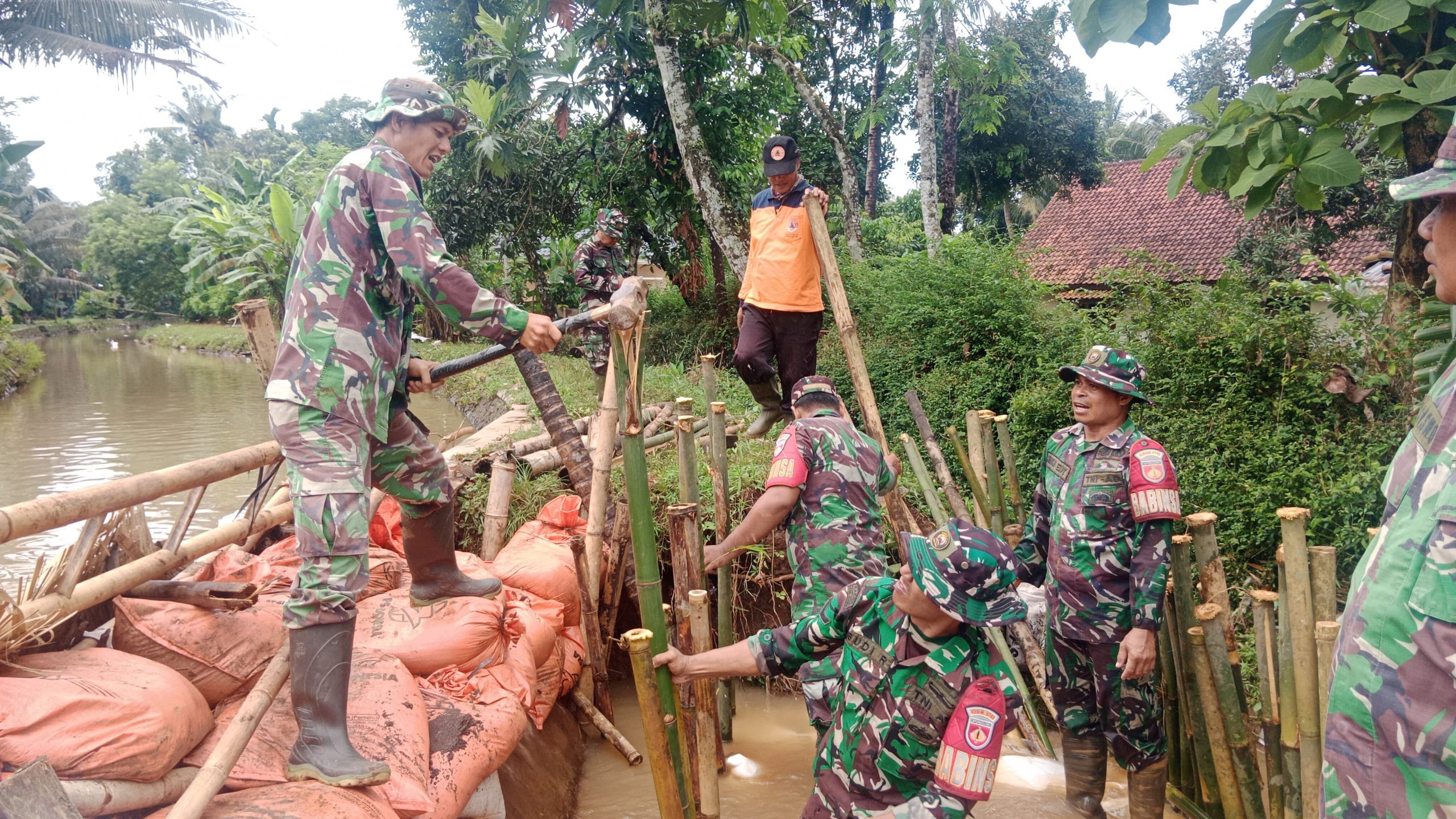 “Telah terbangun tanggul darurat sepanjang 10 M x tinggi 2,5 M x lebar 3 M dari karung yang diisi pasir dan batu yang diperkuat dengan bronjong di lokasi bencana sebagai pengganti tanggul sementara yang jebol, selanjutnya dari Kodim 0702/Purbalingga juga telah dilaksanakan pemberian paket bantuan Sembako kepada warga terdampak bencana,” ungkapnya menjelaskan.