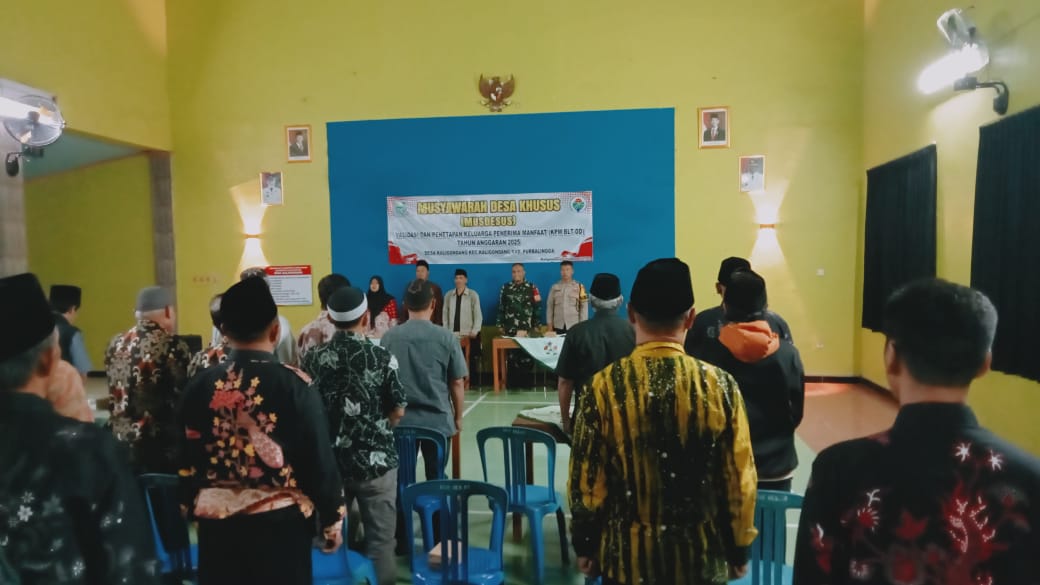 PURBALINGGA – Babinsa Sertu Rohmadi Koramil 02/Kaligondang Kodim 0702/Purbalingga menghadiri Musyawarah Desa Khusus (Musdesus) untuk membahas validasi dan penetapan Keluarga Penerima Manfaat (KPM) Bantuan Langsung Tunai Dana Desa (BLT-DD) Tahun 2025. Kegiatan bertempat di Aula Balai Desa Kaligondang, Kecamatan Kaligondang, Kabupaten Purbalingga, Jumat malam (10/01/2025).