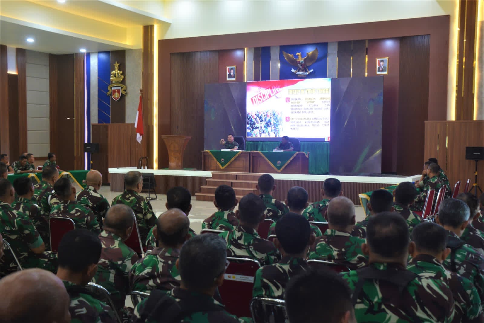 “Guna menghadapi tantangan tugas yang semakin kompleks, segenap prajurit dan PNS harus menjaga mental kuat dengan melatih ketangguhan mental menghadapi tekanan, rasa takut dalam situasi sulit. Prajurit dan PNS harus selalu berpikir positif dan tetap tenang saat menghadapi tantangan atau situasi darurat”, jelasnya.