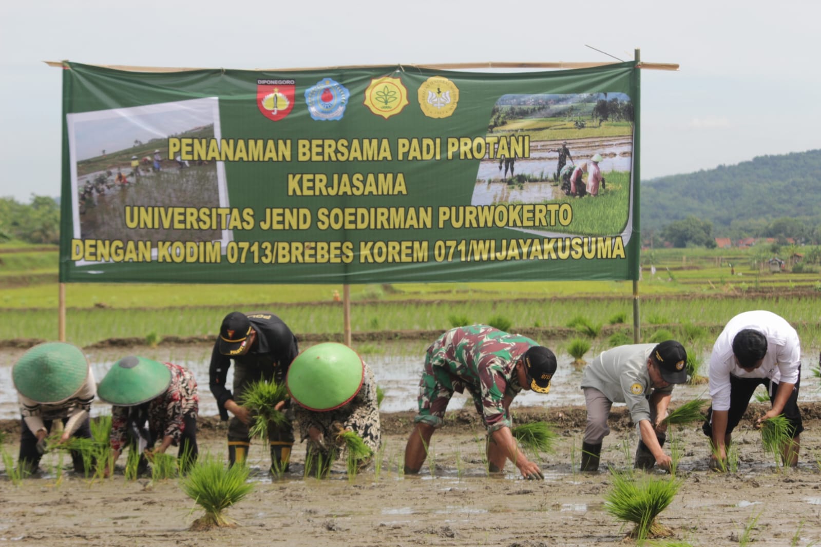 “Penggunaan varietas unggul toleran kekeringan dan berkandungan protein tinggi yang dihasilkan tim pemulia padi Unsoed ini akan memperkuat upaya yang dilakukan Kodim 0713/Brebes untuk menghadapi kekeringan hingga September nanti dengan penyediaan pompa air bagi kelompok tani yang membutuhkan,” ujar Letkol Inf Sapto Broto.