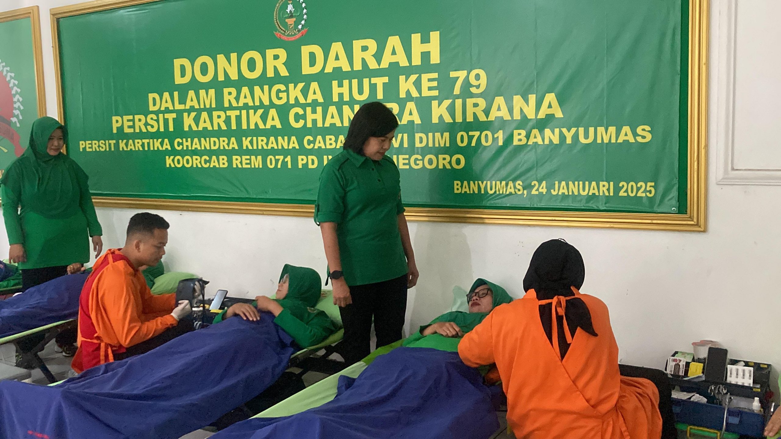 Kegiatan donor darah dalam rangka HUT ke 79 Persit KCK Tahun 2025 bekerjasama dengan UDD (Unit Donor Darah) PMI Kabupaten Banyumas dan turut diikuti oleh para Pasi dan Danramil jajaran Kodim 0701/Banyumas beserta Anggota Kodim 0701/Banyumas, Ketua Persit KCK Cabang XVI Kodim 0701/Banyumas Ny. Diah Bagus beserta Anggota Persit KCK Cabang XVI Kodim 0701/Banyumas.