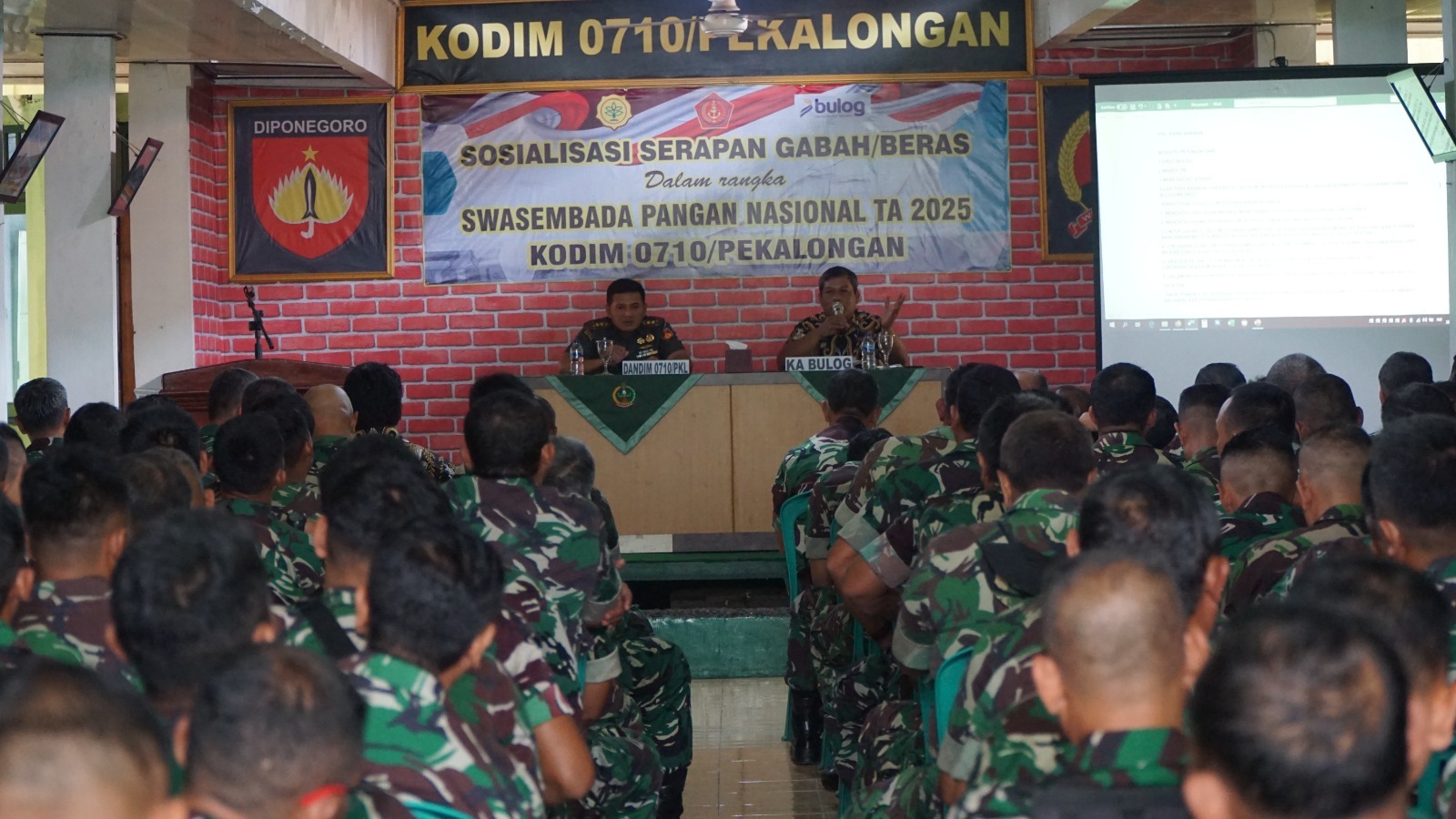 Kota Pekalongan – Dalam rangka mendukung program Swasembada Pangan Nasional Tahun Anggaran 2025, Bulog mengadakan sosialisasi serapan gabah/beras kepada prajurit Kodim 0710/Pekalongan.