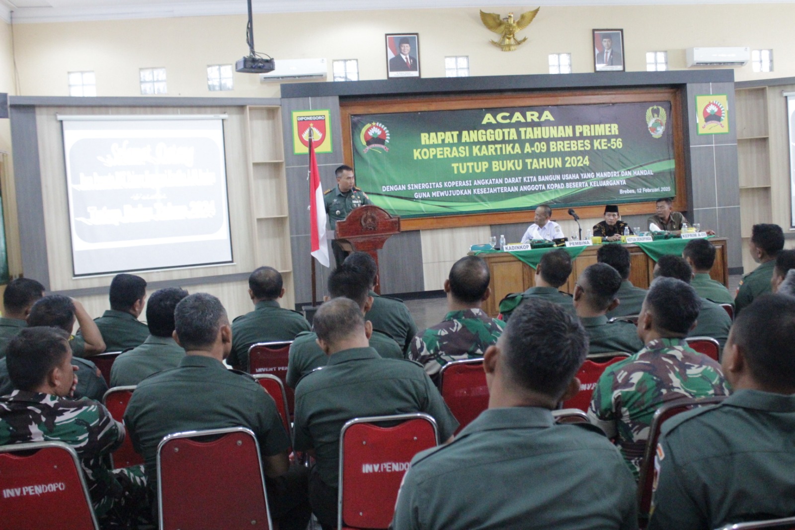 Brebes – Kodim 0713/Brebes menggelar Rapat Anggota Tahunan (RAT) Primkop Kartika A-09 Brebes tutup buku tahun 2024, bertempat di Aula Makodim Jl. Jenderal Sudirman No.56 Kaumanpasar Kecamatan Brebes, Kabupaten Brebes, Rabu, (12/2/2025). Mengusung tema “Dengan Sinergi Koperasi Angkatan Darat Kita Bangun Usaha Yang Mandiri Dan Handal Guna Mewujudkan Kesejahteraan Anggota Kopad Dan Beserta Keluarga”.