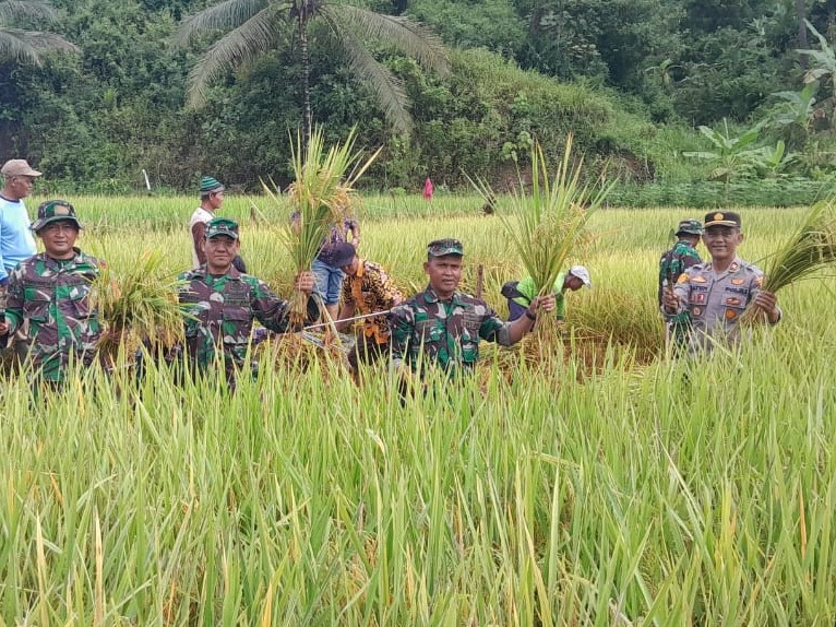 Danramil 20/Lumbir Kapten Inf Subandi mengungkapkan, sebagai wujud dukungan TNI khususnya prajurit kewilayahan, kami hadir dalam mendukung ketahanan pangan, dengan semangat ikut serta terjun langsung ke sawah membantu petani desa binaan saat memanen padi.