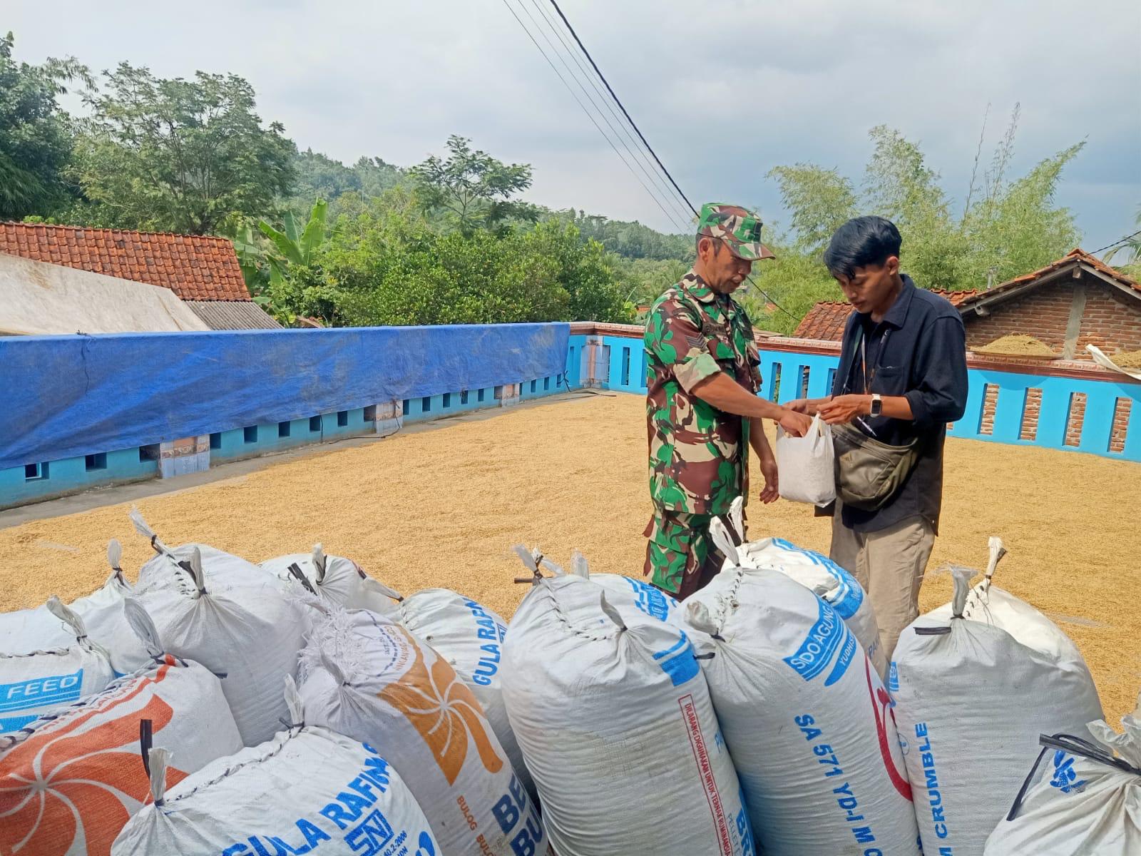 Banyumas – Babinsa Koramil 21/Jatilawang Kodim 0701/Banyumas Korem 071/Wijayakusuma, Serka Rustam Buamona melaksanakan pendampingan dan pemantauan kegiatan penyerapan gabah dari petani oleh Perum Bulog Kancab Banyumas yang berlangsung di Desa Gunungwetan, Kec. Jatilawang, Kab. Banyumas, Kamis (10/04/2025).