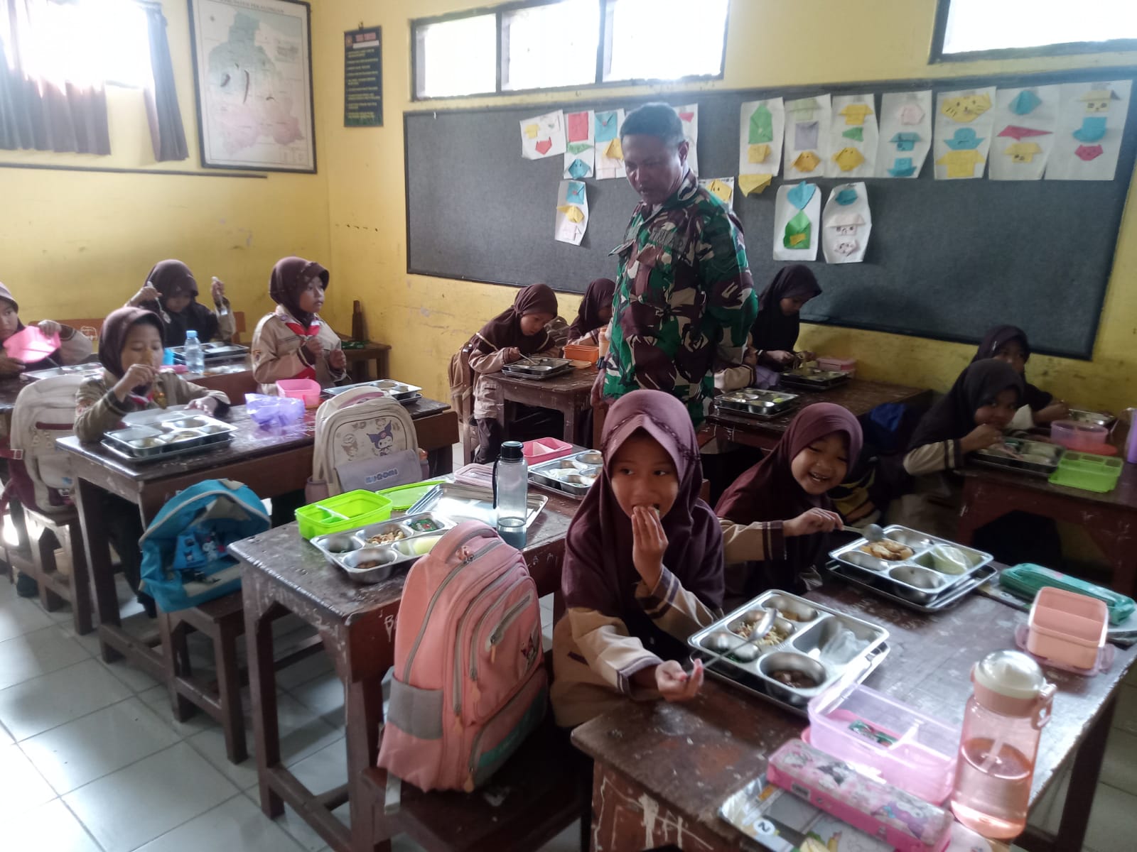 “Kami tidak hanya memantau proses distribusinya, tetapi juga memastikan bahwa makanan yang dibagikan memenuhi standar gizi, kebersihan, dan keamanan pangan. Ini penting untuk kesehatan dan tumbuh kembang anak-anak kita,” ujar Serda Sugiarto.