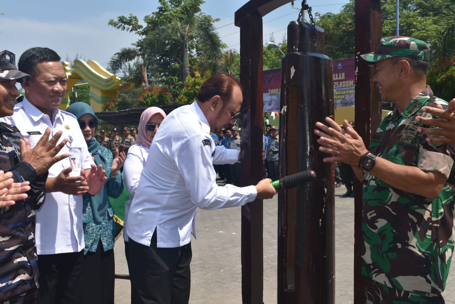 Upacara pembukaan ditandai dengan pemukulan kentongan oleh Walikota Tegal didampingi Forkopimda sebagai simbol dimulainya TMMD Sengkuyung Tahap IV Tahun 2025 di Kota Tegal.